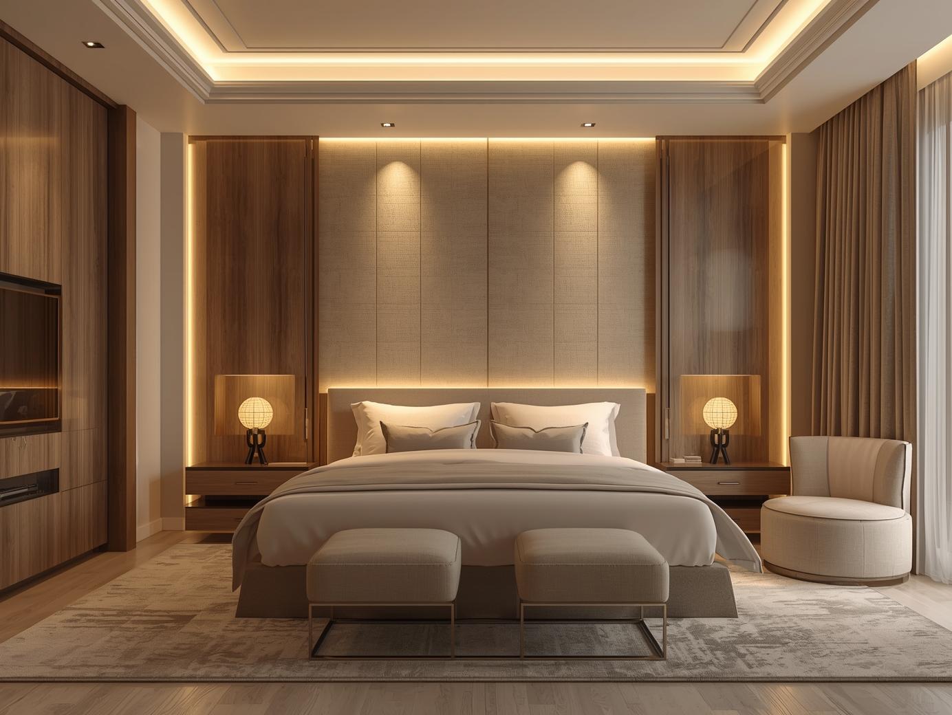 Modern ceiling designs and layered lighting solutions that enhance ambience and architectural appeal.